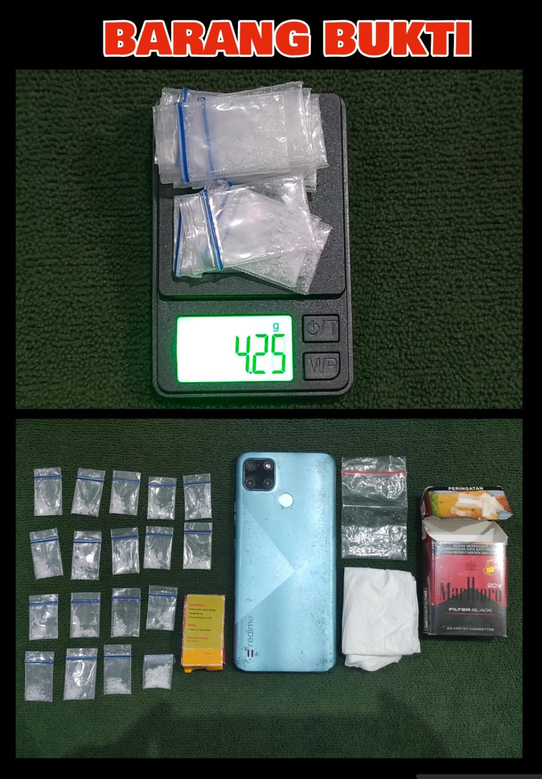 Iptu Tarmizi menambahkan,polisi mengamankan 18 saset dengan berat 4,25 gram yang diduga sabu sabu sebagai barang bukti. “Termasuk Handphone, Bungkus rokok dan tempat obat berbentuk kotak ikut dijadikan barang bukti,” ungkapnya.